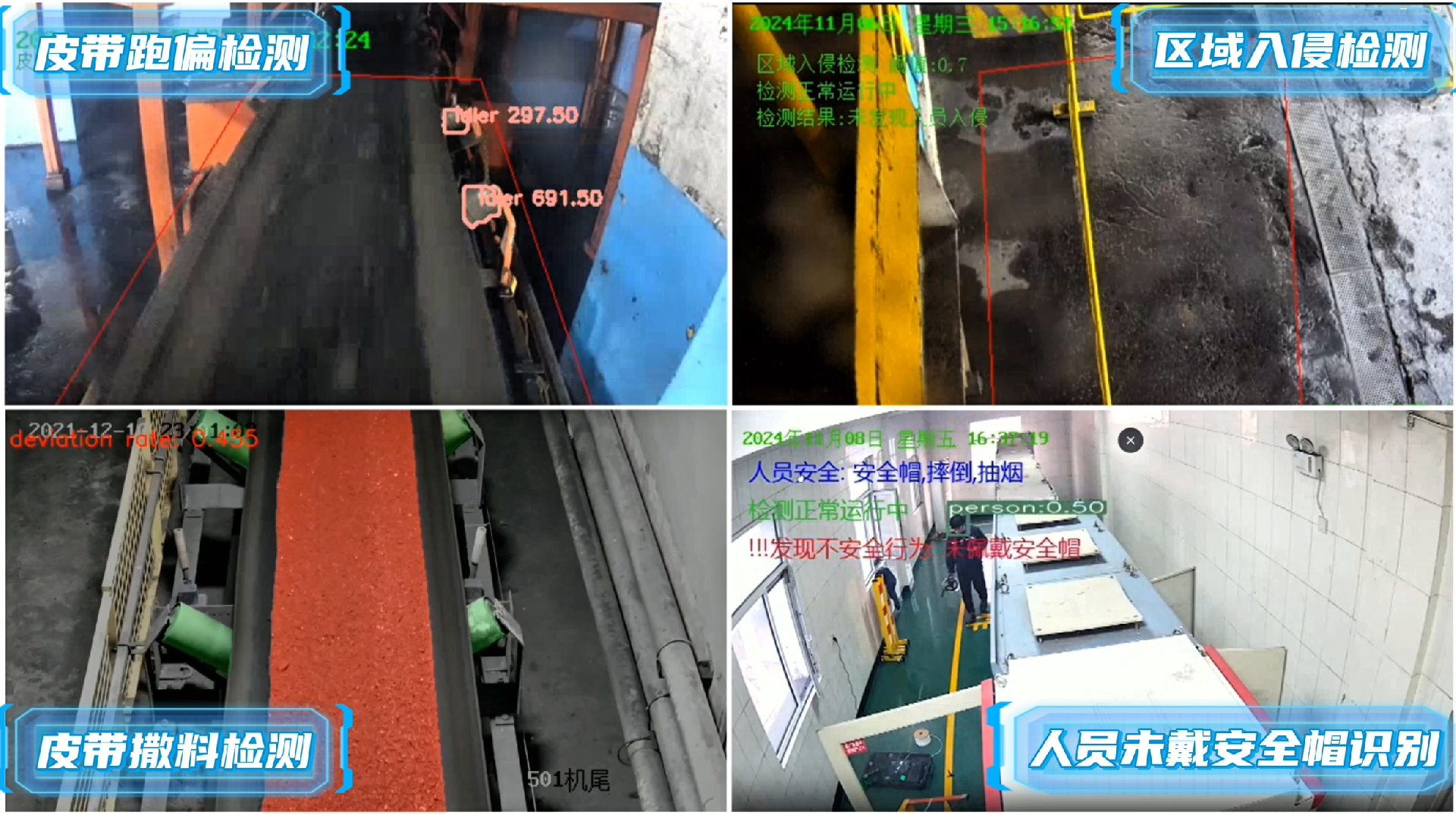 產(chǎn)品簡(jiǎn)介:利用先進(jìn)的人工智能技術(shù),對(duì)選煤廠各環(huán)節(jié)實(shí)時(shí)視頻精準(zhǔn)分析。通過(guò)智能圖像識(shí)別,能快速精準(zhǔn)判斷設(shè)備運(yùn)行狀態(tài),提前預(yù)警故障,減少停機(jī)時(shí)間。還可監(jiān)測(cè)人員操作規(guī)范,保障作業(yè)安全,避免違規(guī)行為引發(fā)事故。其創(chuàng)新之處在于打破傳統(tǒng)監(jiān)管局限,以自動(dòng)化、智能化手段實(shí)現(xiàn)全方位、無(wú)死角監(jiān)管,大幅提升選煤廠管理效率與生產(chǎn)效益。